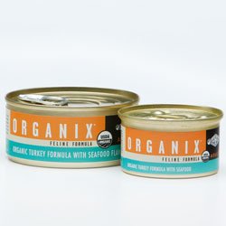 Castor & Pollux Organix Feline Organic Turkey Formula with Seafood Flavor Canned Cat Food uses Organic Free-Range Turkey meat as their #1 ingredient, assuring you and your cat that each turkey was fed a certified organic diet with no pesticides, no antibi