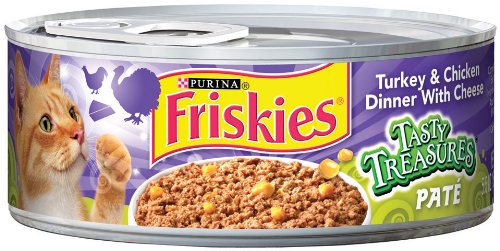 Product Description : Purina Friskies Tasty Treasures Paté, Turkey and Chicken Dinner with Cheese Cat Food, 5.5-Ounce (Pack of 24)