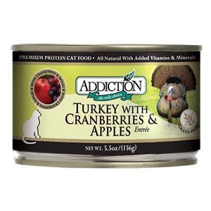 Product Description : Addiction Turkey With Cranberries & Apples Entree Canned Cat Food, 5.5-oz, case of 24