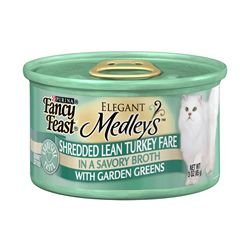 Product Description : Fancy Feast Elegant Medleys Shredded Lean Turkey Fare with Garden Greens (24/3-oz cans)