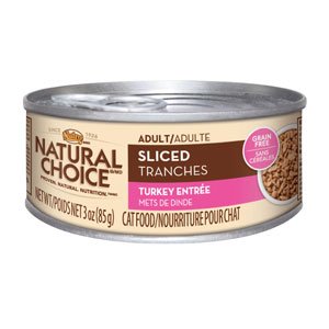 It?sThanksgiving every day with Nutro Natural Choice Adult Sliced Turkey Entree Canned Cat Food! Filled with tender chunks of turkey saturated in a creamy gravy, this meal will have your cat gobbling?.or maybe not, but definitely meowing for seconds! It?s highly palatable, delicious and free of grains so it?s a perfect meal if your cat is allergic or sensitive to certain grains! Nutro Natural Choice Adult Sliced Turkey Entree Canned Cat Food is the natural way to feed your adult cat something aw