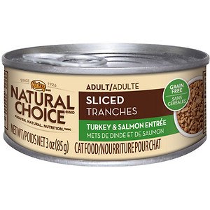 Nutro Natural Choice Adult Sliced Turkey & Salmon EntrTe Canned Cat Food, 3-oz, case of 24; It’s the best of both worlds. NATURAL CHOICE Adult Sliced Turkey & Salmon Entrée gives your cat two flavors to enjoy in a formula with simmered cuts in a tasty sauce. They’ll enjoy the taste of real turkey and salmon, and you’ll feel good about feeding a formula with no artificial colors, flavors or preservatives. Help your cat live a long, healthy life with our naturally delicious nutrition. Key Benefits